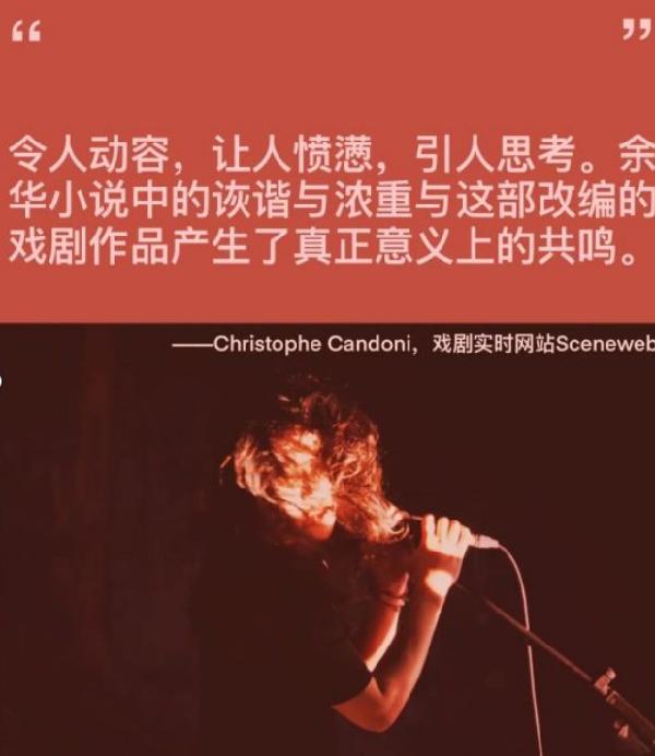现实生活中粗粝残酷的烙印依然存在,但戏剧却犹如一剂柔情悲悯的良方,给人继续向前的强大能量。余华在小说结尾描述了一个世界,我们在戏剧中找到了。在那里,第一天要有光,第七天也要有光。