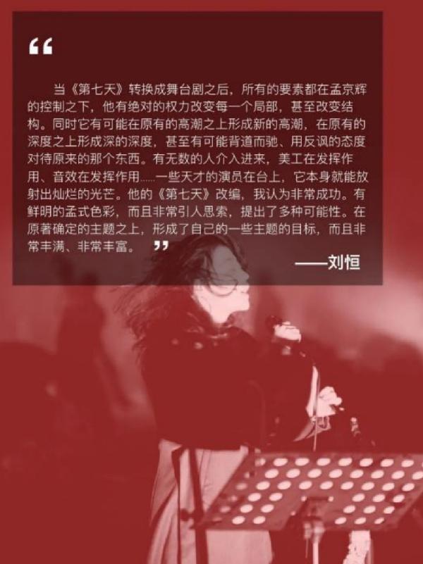 《第七天》所释放出来的强大文化能量和戏剧命题不仅赢得了源源不断的掌声和好评,更得到不同领域专家学者的高度认可。